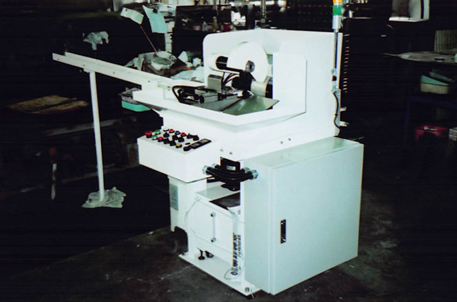 難削材の管や軸を砥石で全自動切断する機械で、材料をセットするだけで正確なカッティング作業をします。